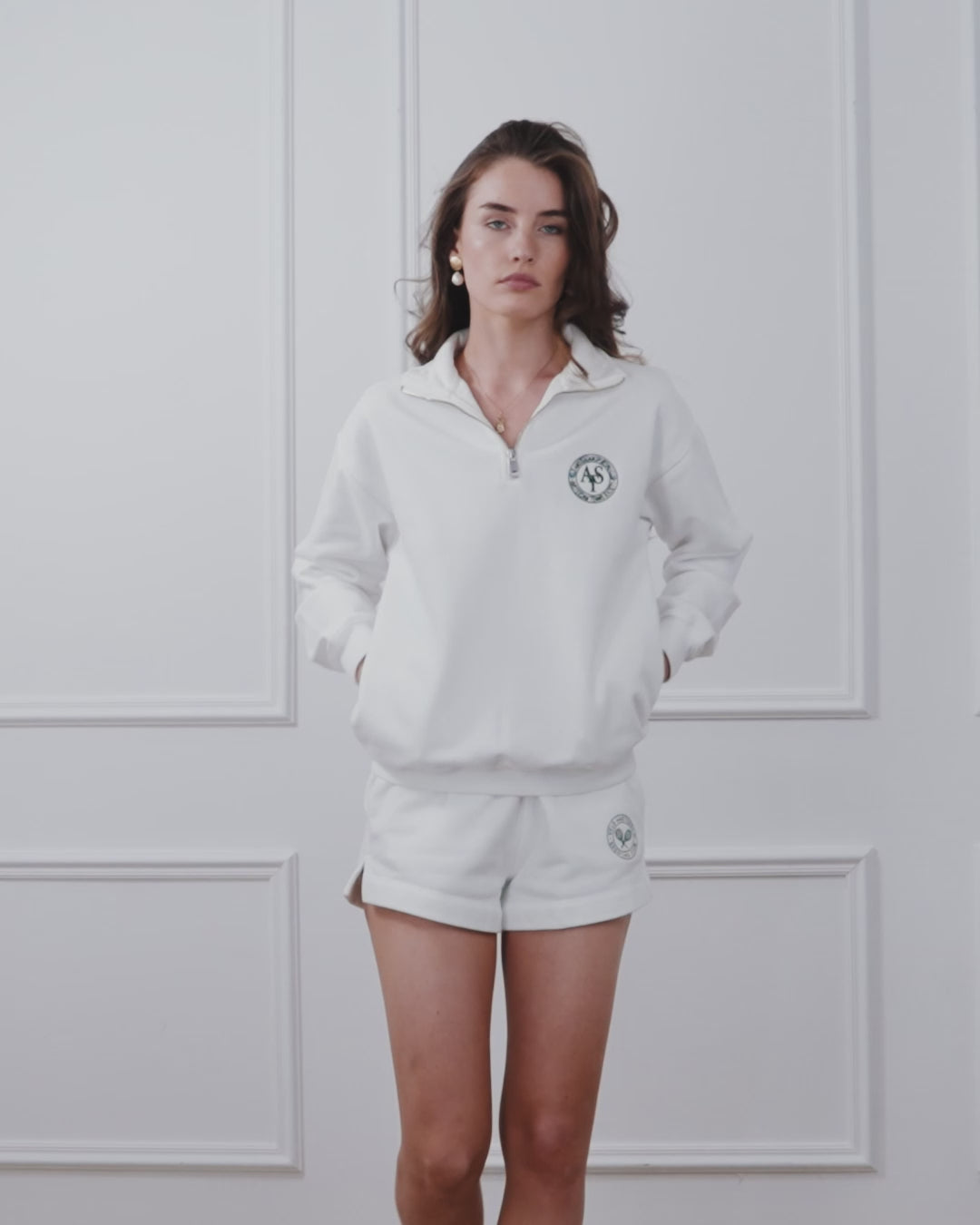 Perfect for those warm summer days, the Amstel Cropped Sweat Short is a flattering yet uber-comfortable short. The Amstel Cropped Short features a stretch waist band, adjustable drawstring, side slits, and lined pockets crafted from soft, breathable, 415 gsm Organic Cotton. Features preppy tennis inspired embroidery on the leg.
