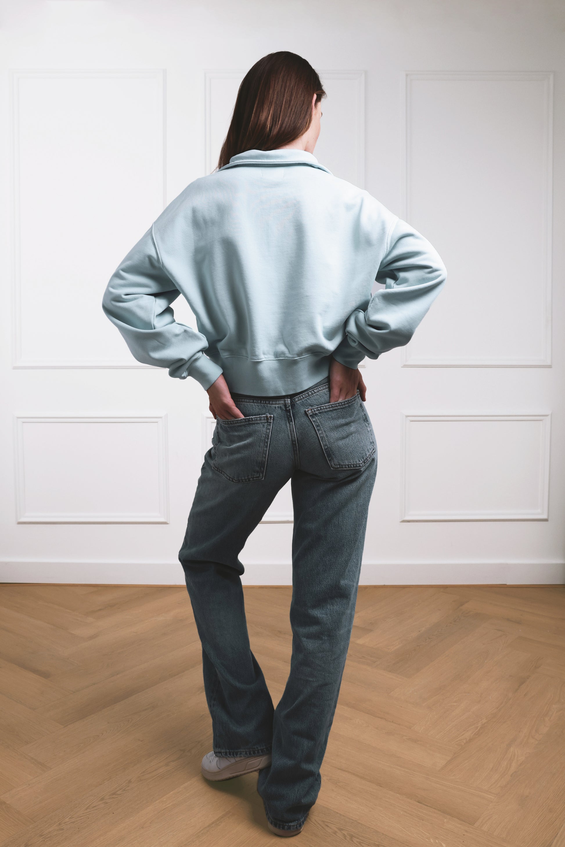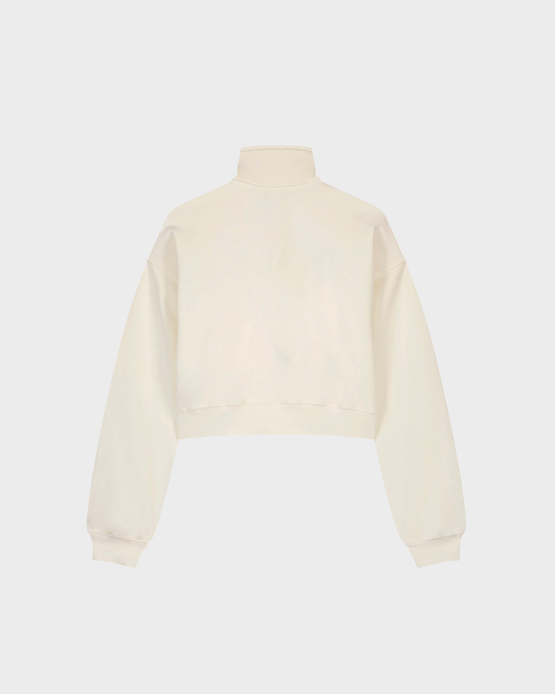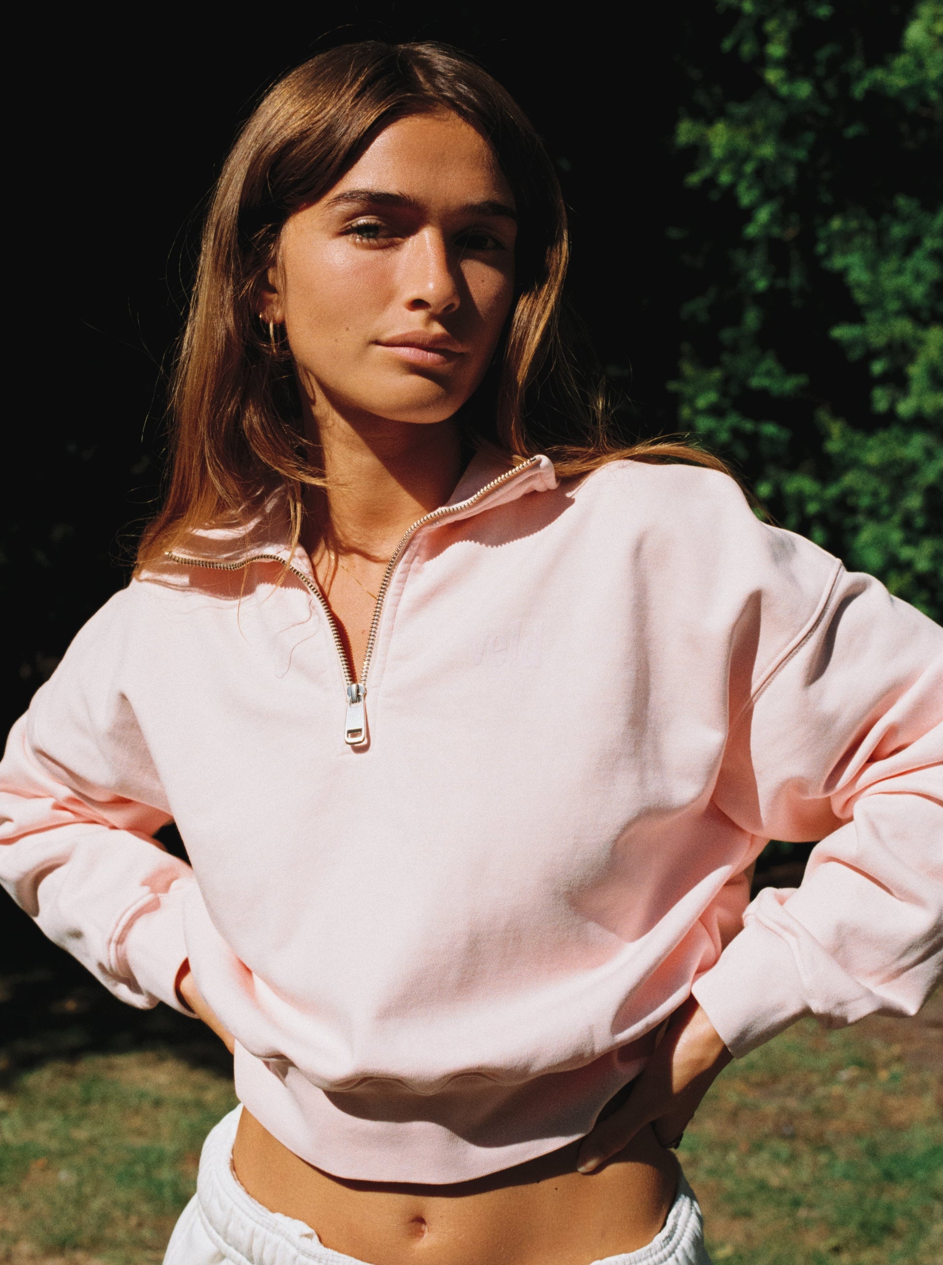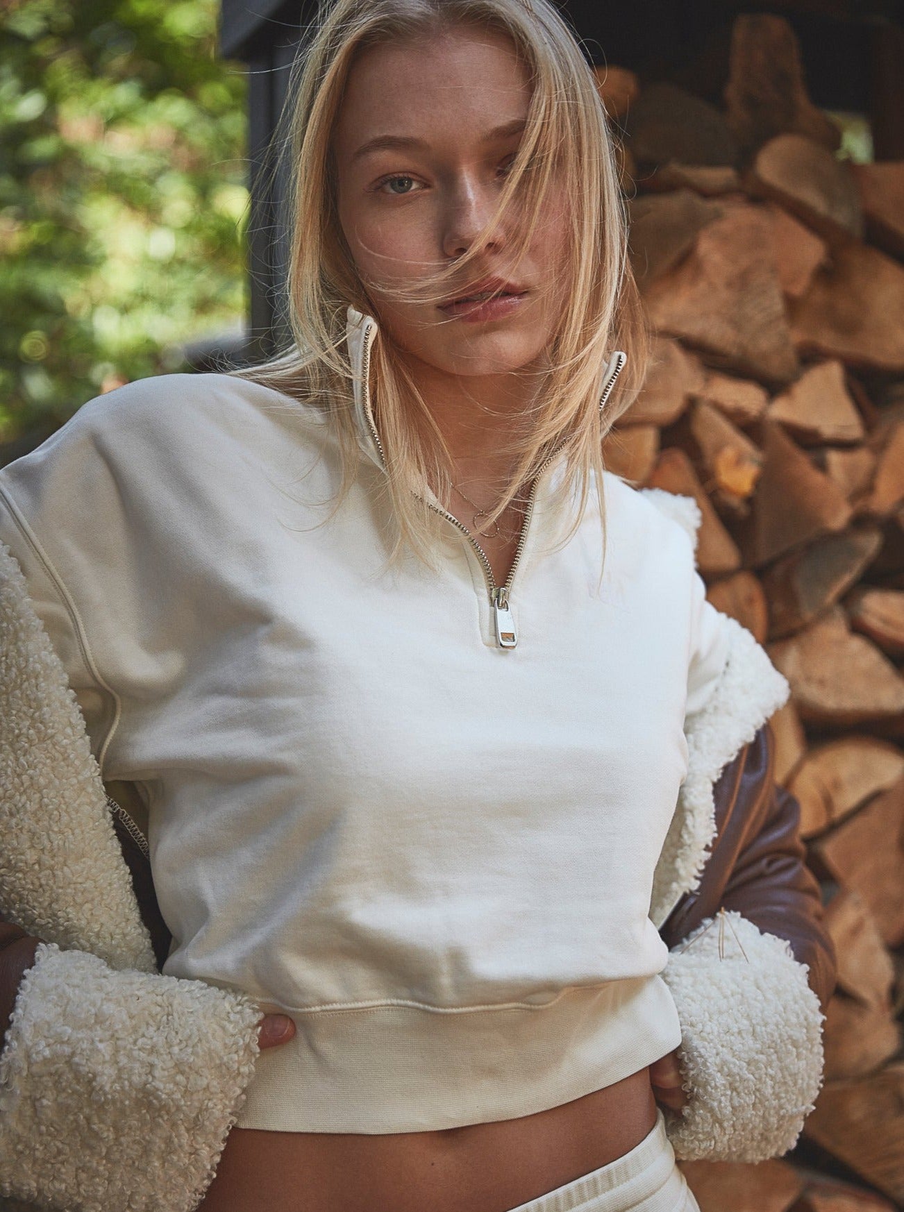 Whether you're heading for a hike or meeting up for drinks, we've got you covered. The Runyon Cropped Quarter-Zip Sweatshirt is an effortless piece that can be styled up or down. The 415 gsm Organic Cotton paired with a cropped and spacious fit, provide comfort that also looks amazing. Each piece is individually garment-dyed and features subtle, textured viscose branding.